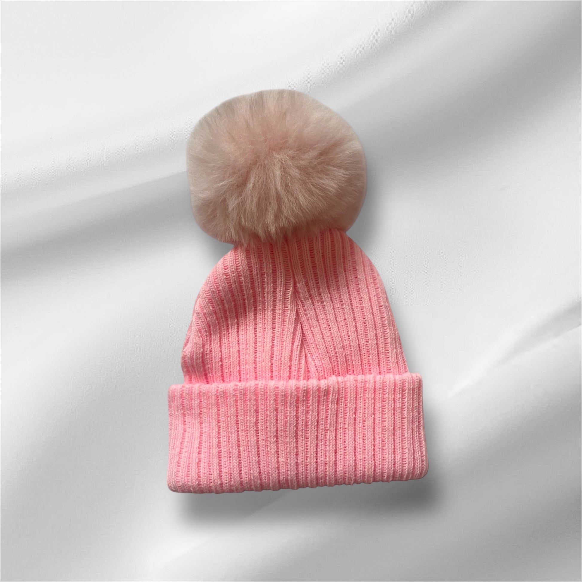 Personalised Faux Fur Knitted Singe Pompom Hats 4 Colours